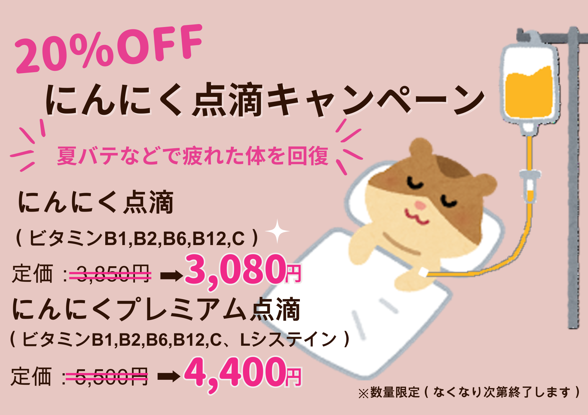 ■にんにく点滴・にんにくプレミアム点滴20%OFFキャンペーン