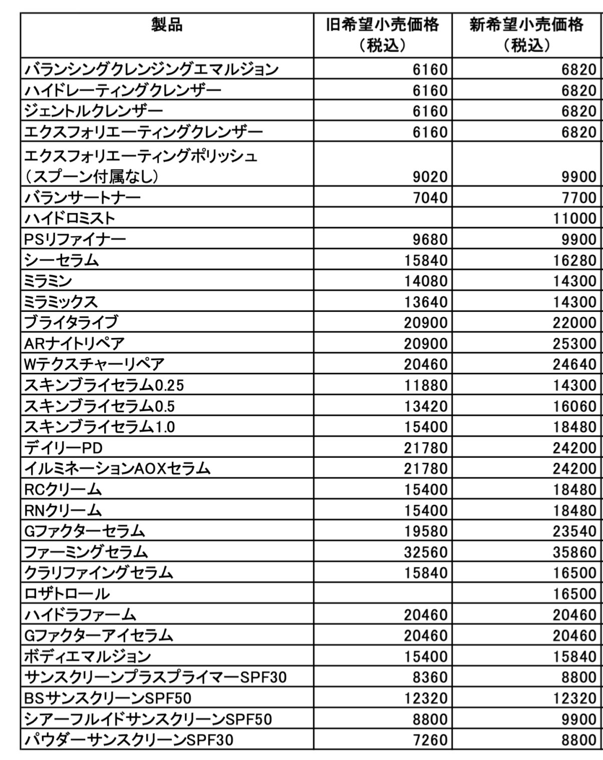 ゼオスキン一部価格改定のお知らせ