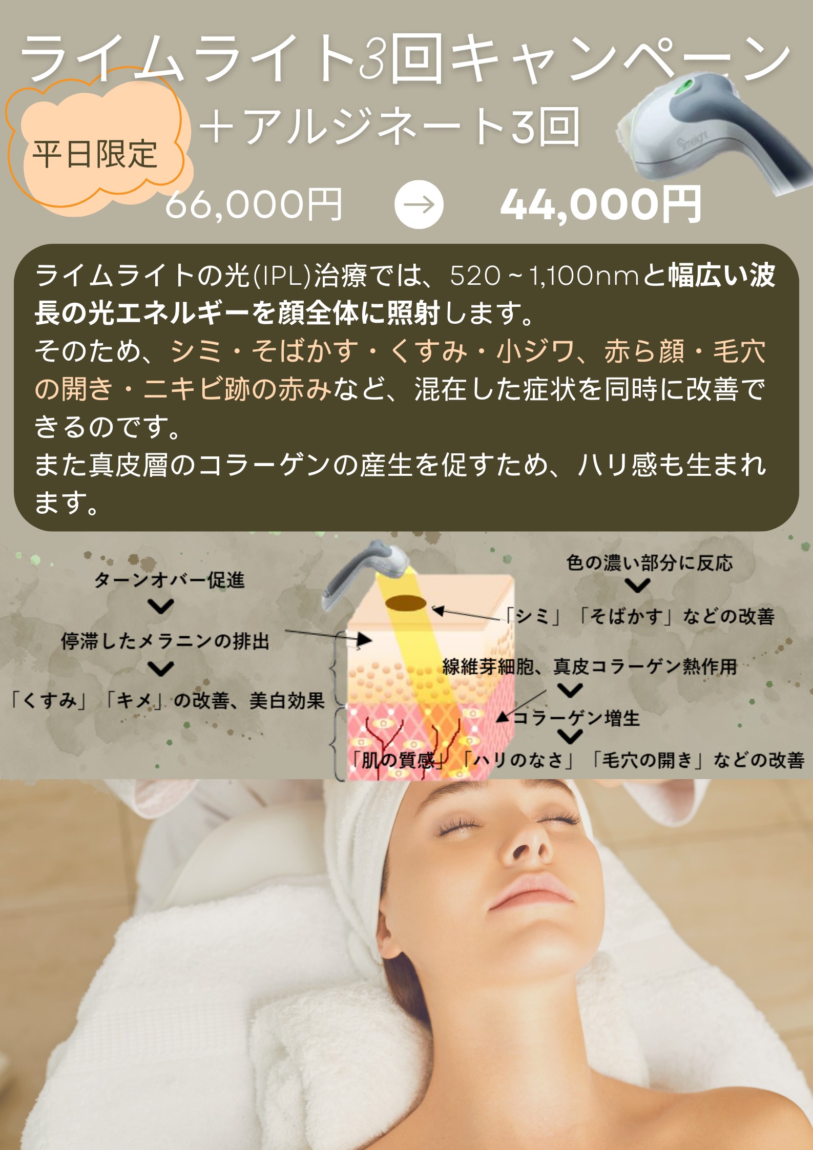 ■ライムライト3回キャンペーン(+アルジネートマスク3回)