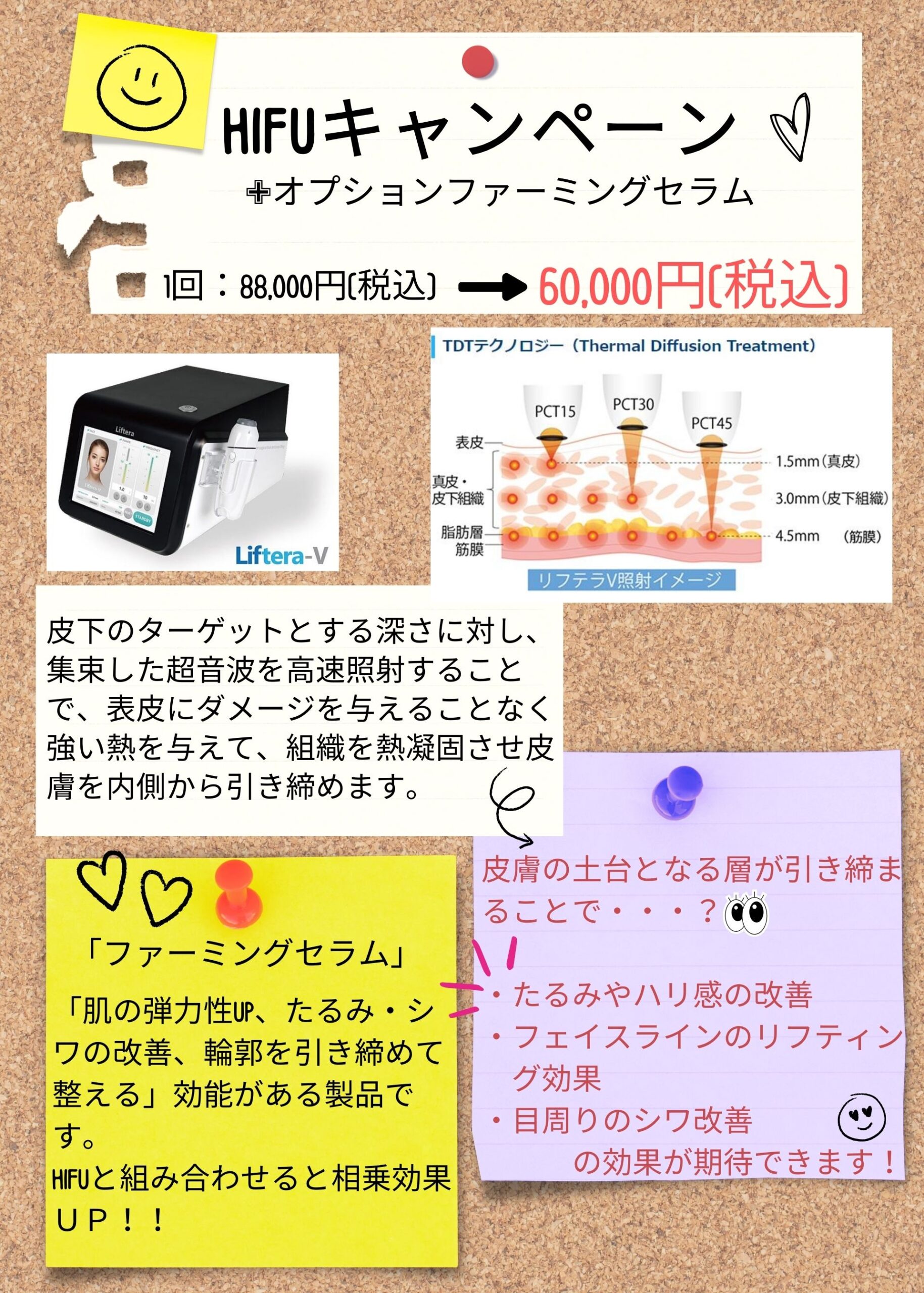 ■HIFUキャンペーン(ファーミングセラムのオプションつき) ご好評につき継続!
